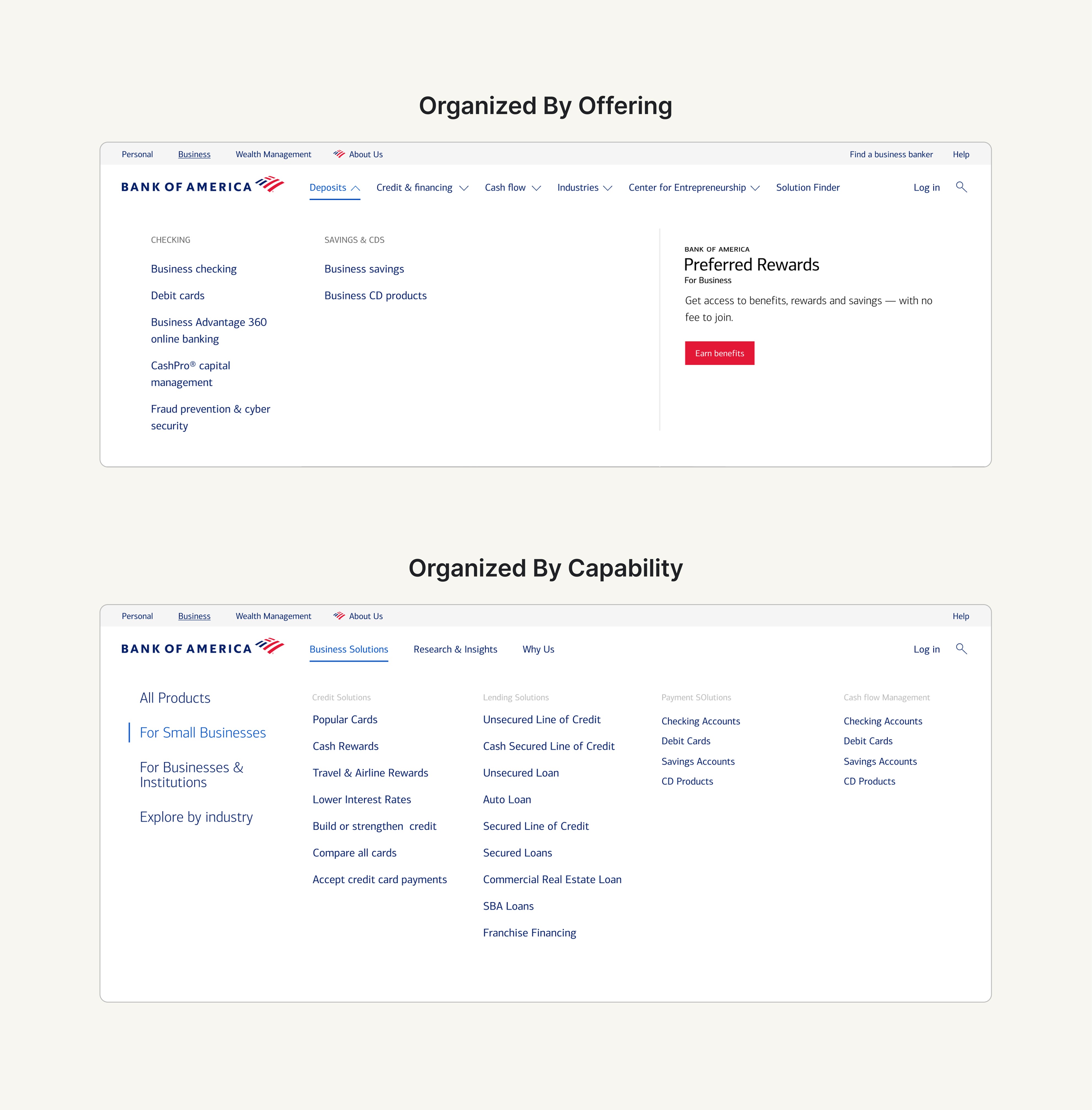 Bank of America's business ecosystem was difficult to navigate, leading to low engagement and retention YoY. I redesigned the login and navigation, as well as created new page templates and components to improve the experience. The result is a personalized platform, increasing engagement, CTR, and reducing dropoff. Experience the live site here.