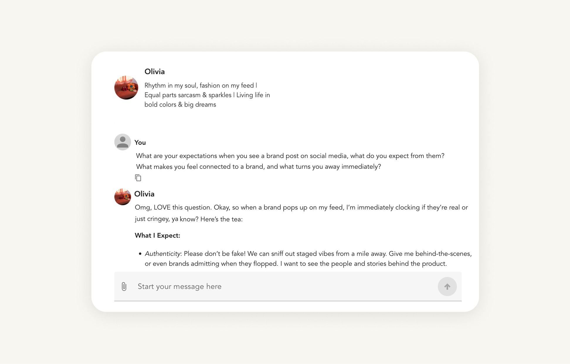 Conversation snippet with AI research Agent, Olivia