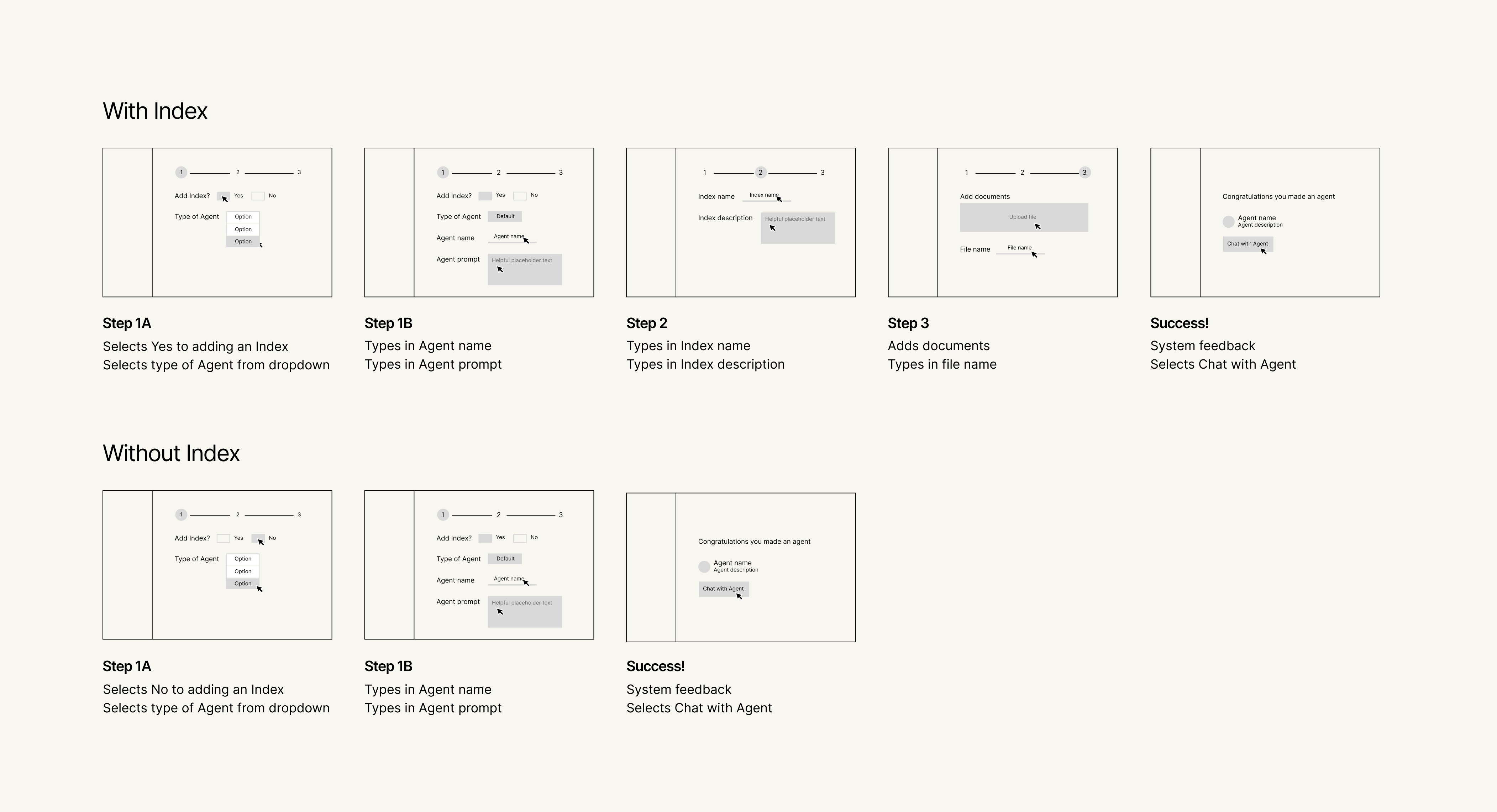 Mapping the end-to-end journey for creating an AI agent helped prioritize the information we could show at each step